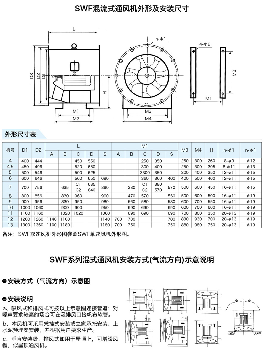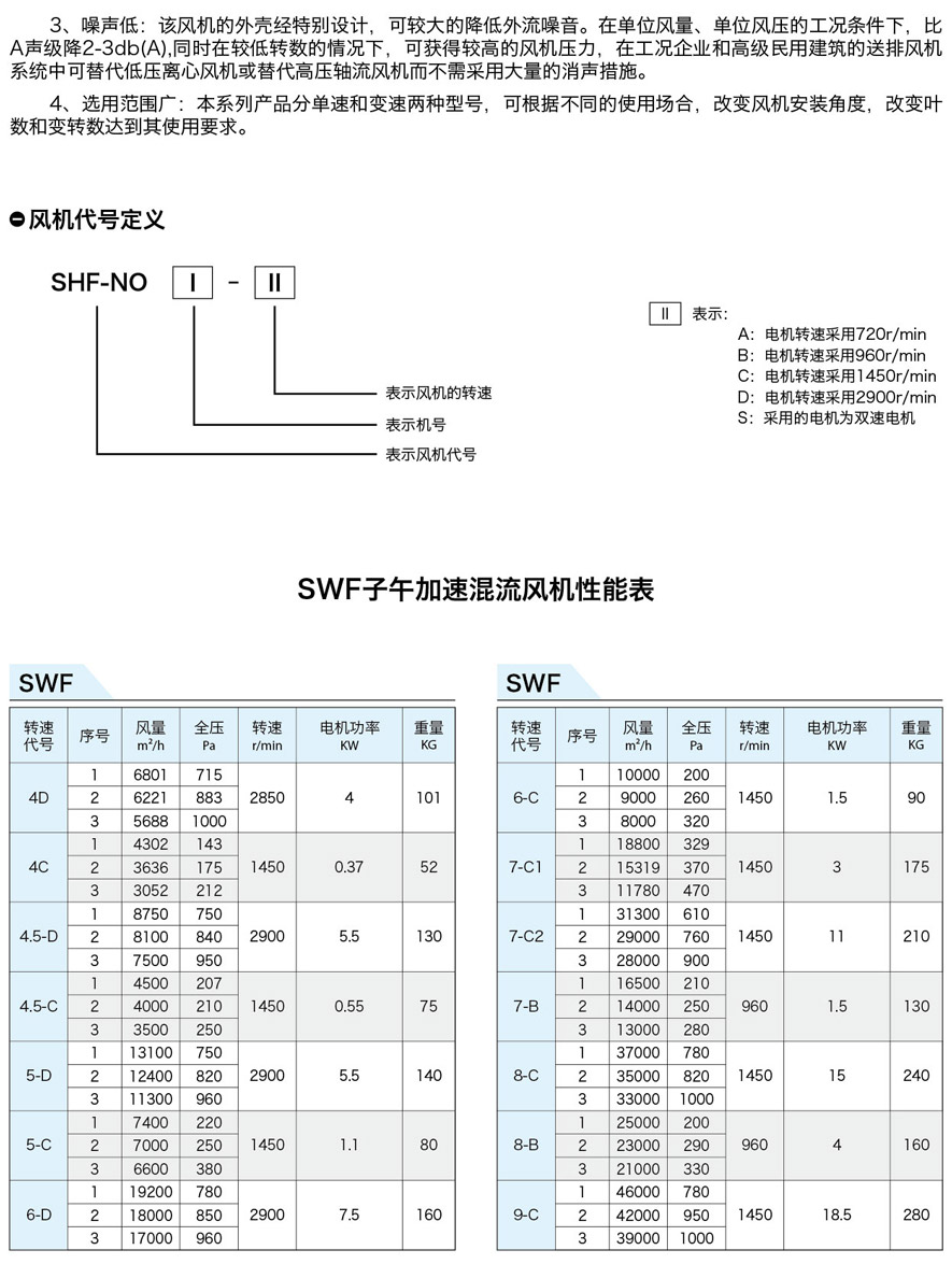 SWF系列流通式通風(fēng)機(jī),具有同機(jī)號風(fēng)置較離心風(fēng)機(jī)大,風(fēng)壓較軸流風(fēng)機(jī)高,可以軸向安裝; 噪聲低、耗 電省,高效區(qū)寬、安裝使用較離心風(fēng)機(jī)方便、運行可靠等特點。